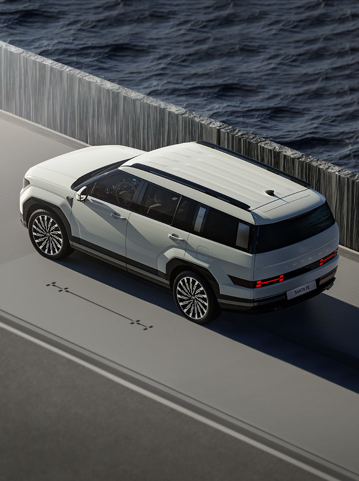 현대자동차는 신형 싼타페에 엠블럼을 아이코닉한 형상으로 재해석한 H 형상의 디자인을 곳곳에 반영했습니다. 전면에는 헤드램프와 좌우 헤드램프를 수평으로 길게 연결하는 램프에 적용돼 와이드한 스탠스를 구현합니다. 후면에는 리어램프에 H 라이트를 반영해 전면과 통일감을 주는 동시에 싼타페만의 차별화된 매력을 선보입니다