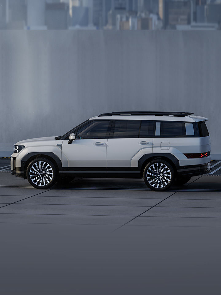 디 올 뉴 산타페의 외관 디자인은 박시한 형태의 강인한 이미지를 바탕으로 긴 휠베이스와 넓은 테일게이트에서 비롯된 유니크한 실루엣이 강렬한 존재감을 드러냅니다.