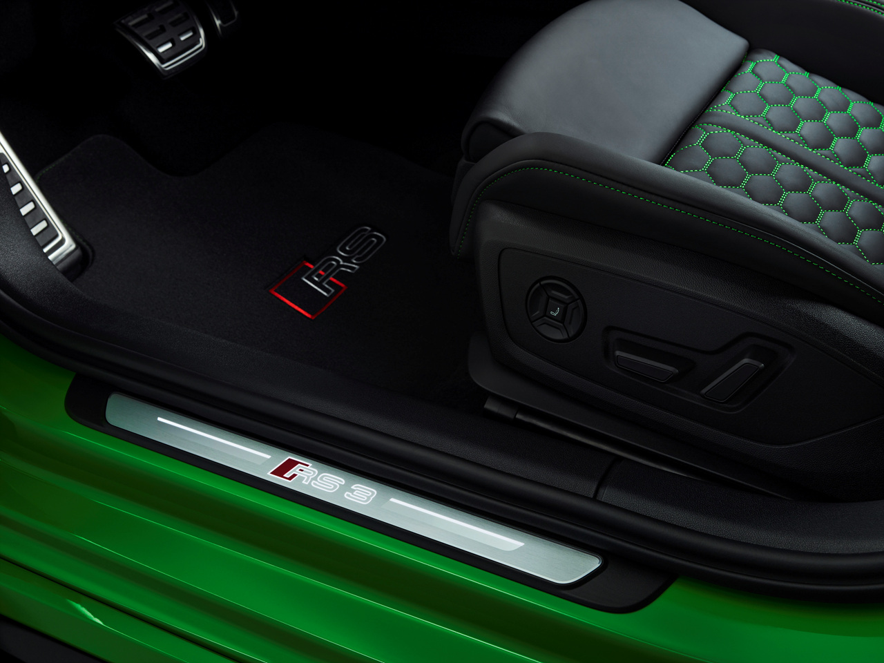 ㅁ RS3의 시트는 RS3 전용의 디자인으로, 스포츠카에 걸맞은 넉넉한 지지력을 제공합니다. 시트에는 RS3 로고가 새겨져 있어, RS3의 특별함을 더해줍니다.