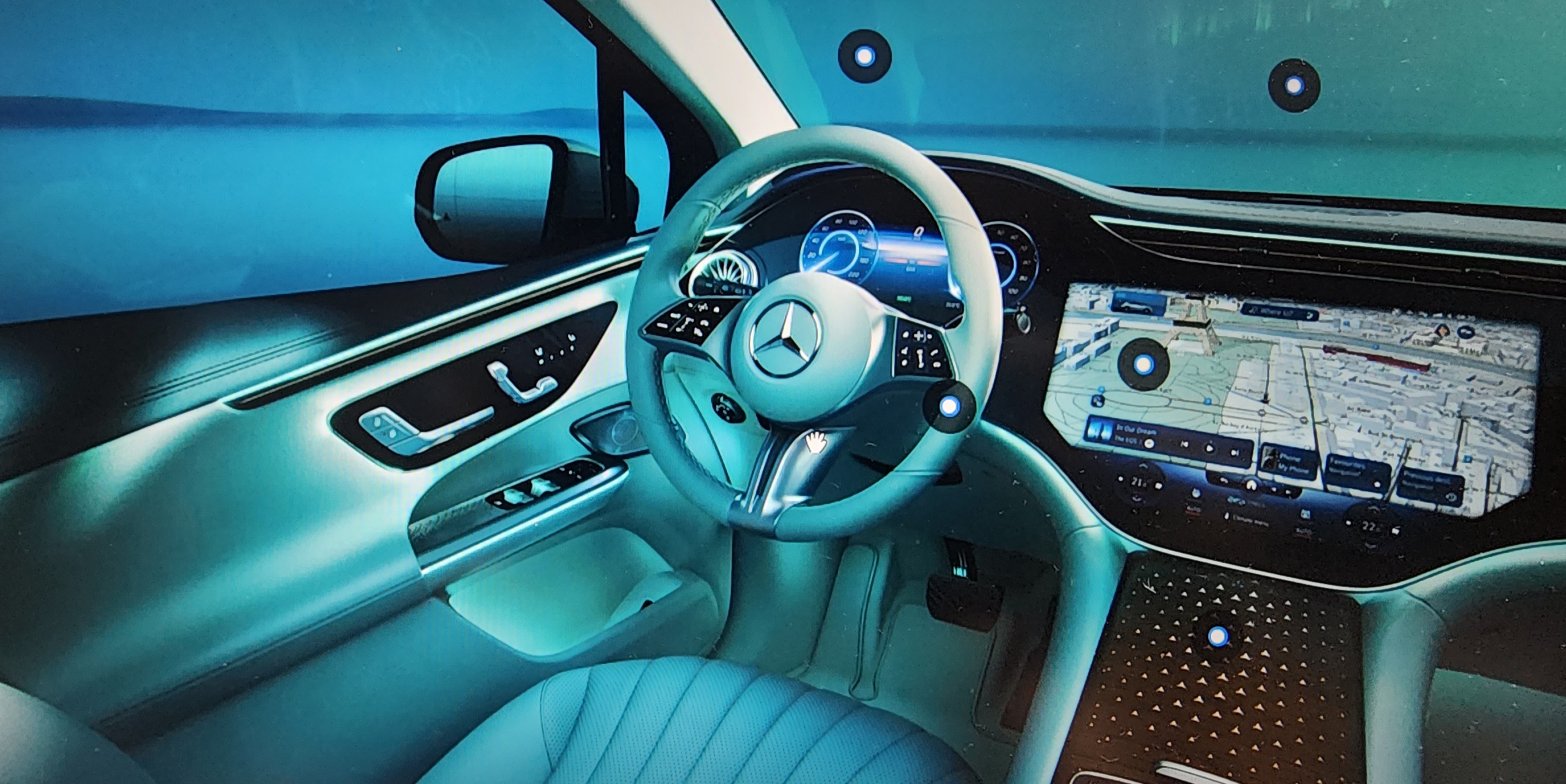 블랙 패널 라디에이터 그릴은 전기차에 필요하지 않은 라디에이터가 없는 대신, 블랙 패널을 적용하여 공기역학을 개선했습니다. LED 헤드램프는 벤츠의 최신 디자인이 적용되어, 날렵한 모습을 보여줍니다. 측면에는 유려한 라인이 적용되어, 역동적인 모습을 보여줍니다. 20인치 알로이 휠은 고급스러운 분위기를 연출합니다.