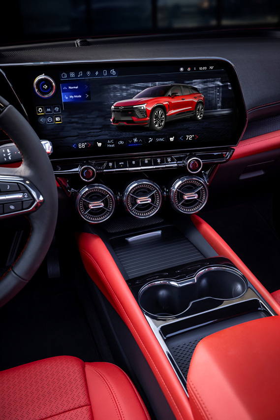 블레이저 EV는 다양한 편의 기능을 제공하며, 고객의 취향에 맞게 선택할 수 있습니다. 쉐보레 블레이저 EV의 내부 디자인은 다음과 같습니다. 1) 17.7인치 인포테인먼트 시스템 2) 11인치 디지털 계기판 3) 통풍시트, 열선시트 4) 듀얼 썬루프 5) 12스피커 보스 사운드 시스템 6) 무선 충전 7) 애플 카플레이, 안드로이드 오토