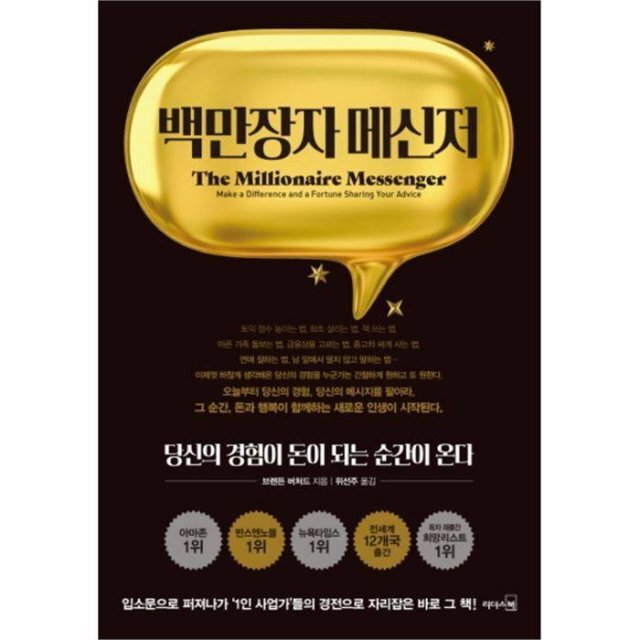 『백만장자 메신저』는 잘 알려진 동기부여 연설가이자 훌륭한 코치인 브렌든 버처드가 쓴 자기개발 서적이다. Burchard는 또한 "High Performance Habits" 및 "The Motivation Manifesto"를 비롯한 다른 인기 있는 서적의 저자이기도 합니다.