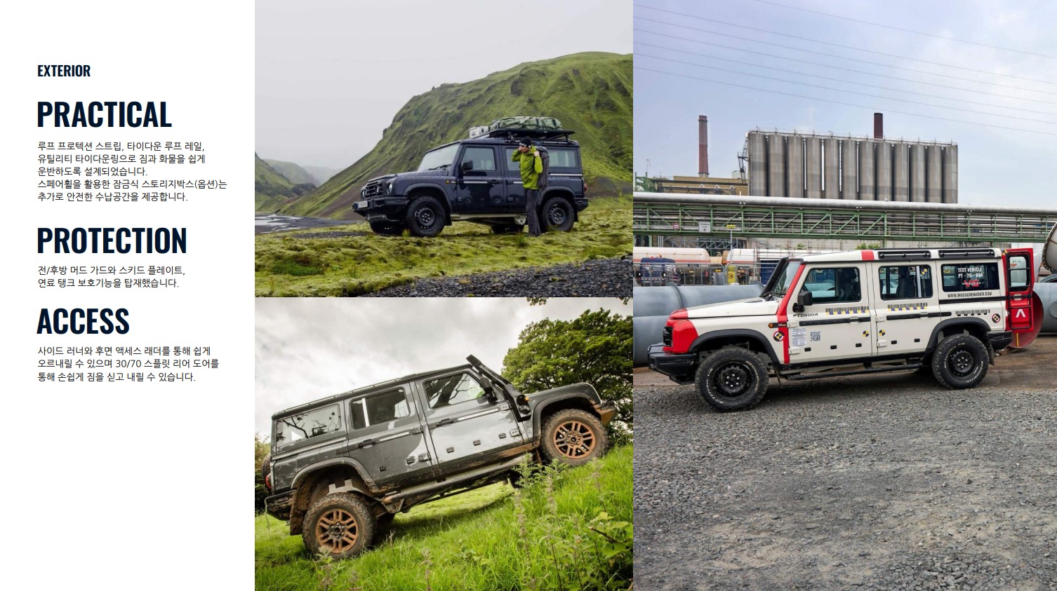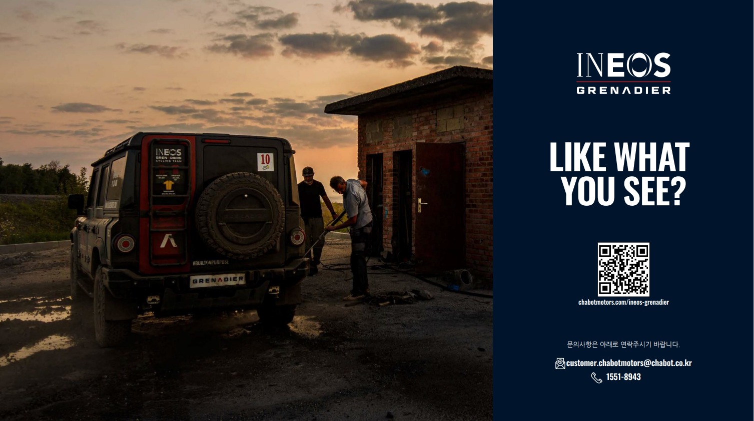 이네오스 오토모티브(INEOS Automotive)의 국내 공식수입원인 차봇모터스가 정통 오프로더 이네오스 그레나디어(INEOS Grenadier) 사전예약을 시작합니다. 구매를 희망하는 고객은 7월 11일 오후 2시부터 차봇모터스 공식 홈페이지를 통해 접수할 수 있습니다.
