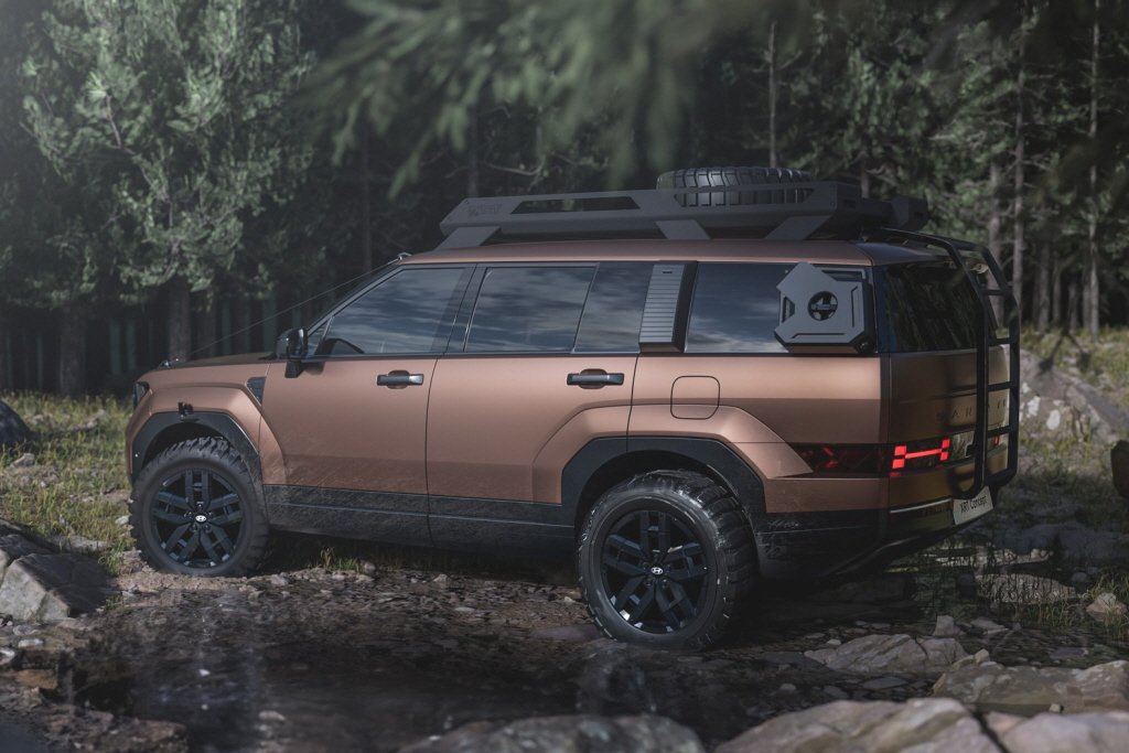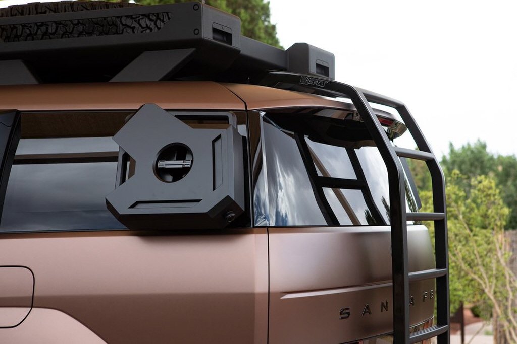 현대차의 싼타페 XRT 콘셉트는 오프로더 스타일의 외부 디자인으로 주목을 받고 있습니다. 이 모델은 싼타페 풀체인지(MX5)를 기반으로 하며, 루프 캐리어와 테일게이트 사다리, 올테레인 타이어 등의 액세서리가 적용되어 강력한 외관을 자랑합니다.
