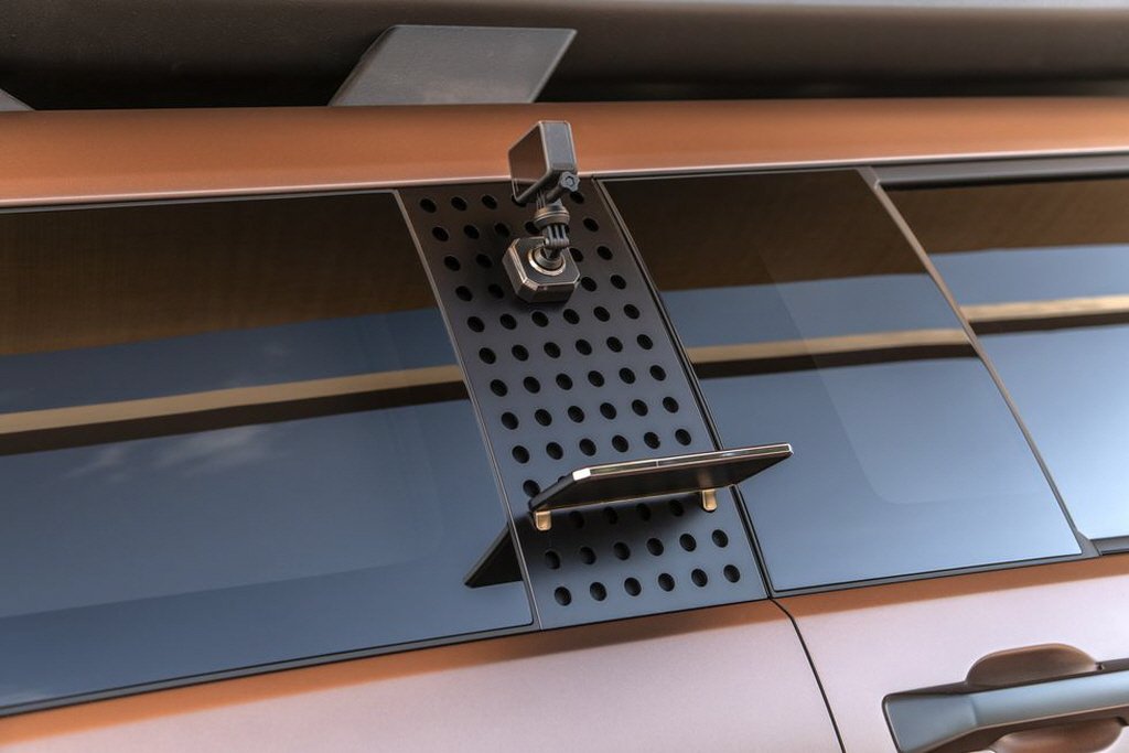 ㅇ 서스펜션 및 최저지상고: 싼타페 XRT 콘셉트는 전용 서스펜션을 탑재하여 일반 모델보다 최저지상고를 높였습니다. 이로써 오프로드 주행 시에도 더욱 효과적인 주행을 가능하게 합니다. 액세서리 및 기능: 측면부 휠 아치 클래딩에는 다양한 액세서리를 부착할 수 있는 장치가 설치되어 있어 활동성을 높였습니다. 또한 루프에는 화물 캐리어와 스페어 타이어가 포함된 루프랙, 후면 테일게이트의 사다리 등 다양한 추가 기능이 장착되어 있습니다.