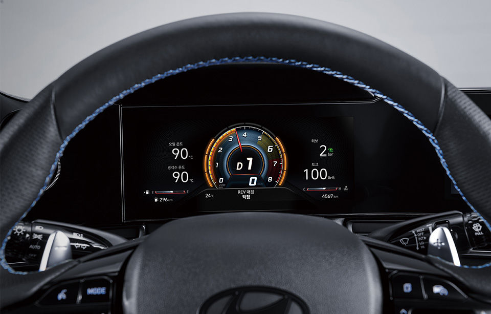 계기판은 N 로고와 다양한 정보를 표시하는 디지털 계기판을 적용했습니다. 인포테인먼트 시스템은 N 로고와 다양한 기능을 제공하는 인포테인먼트 시스템을 적용했습니다.