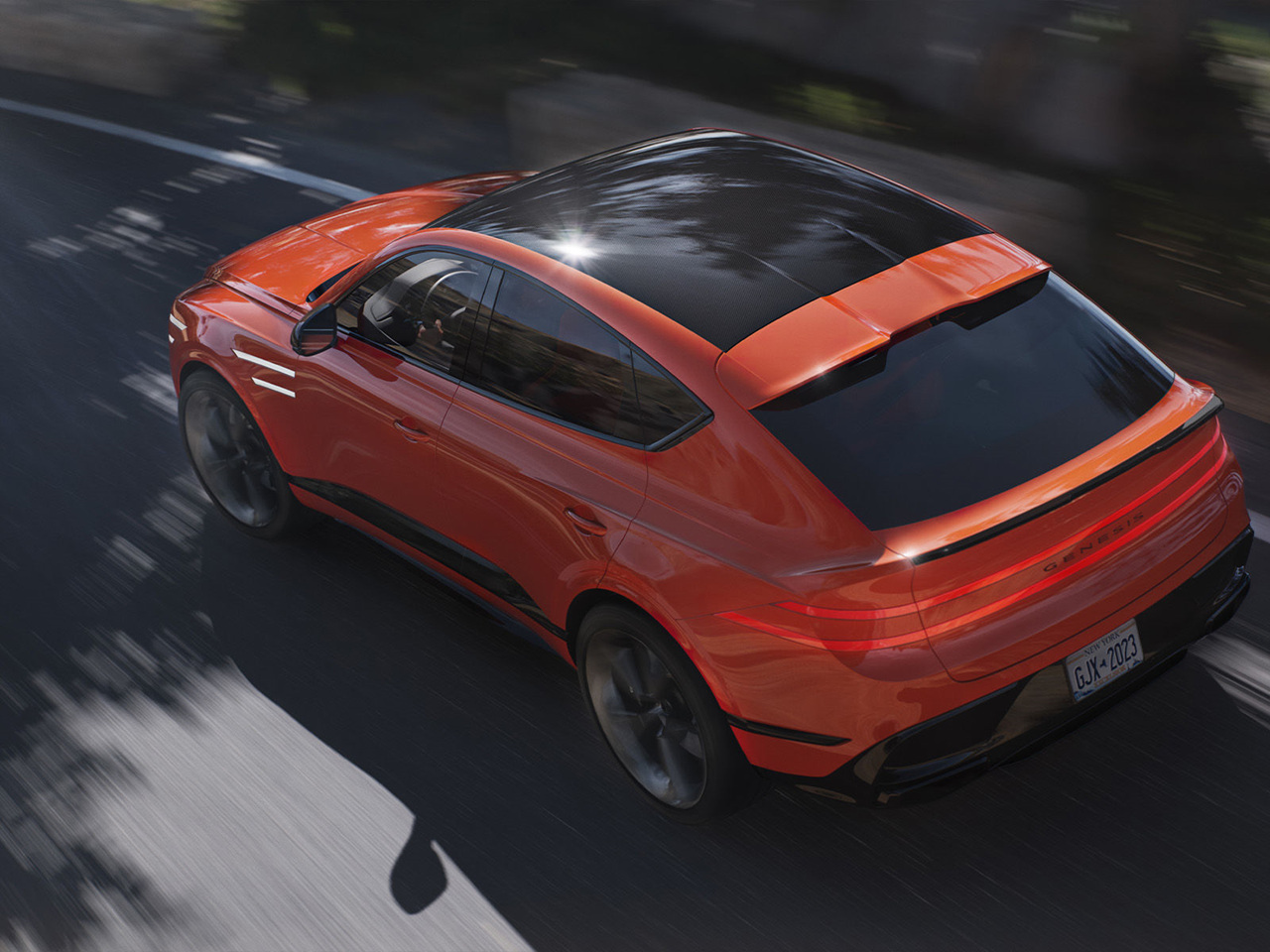 GV80 쿠페는 GV80의 디자인을 기반으로, 쿠페형 SUV의 역동적인 디자인을 적용했습니다. GV80 쿠페는 GV80보다 낮은 지붕 라인과 짧은 리어 오버행을 갖추고 있습니다.