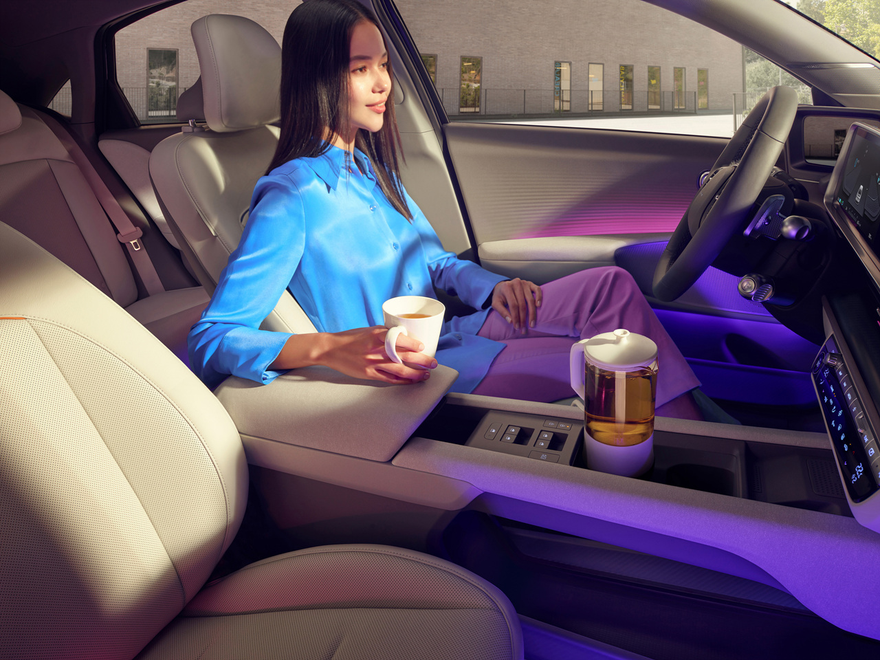 현대자동차의 아이오닉 6는 미래 모빌리티 디자인 테마 ‘인사이드 아웃’을 적용해 사용자 중심의 공간을 구현했습니다. 누에고치를 연상시키는 코쿤(Cocoon)형 인테리어는 탑승객에게 편안한 안식처를 제공하는 동시에 자유로운 활동 공간이 되기도 합니다. 아이오닉 6는 기술과 미학의 감성적 융합이며, 전동화 시대를 맞이한 엔지니어와 디자이너가 함께 고객 중심의 가치를 고민해 만들어낸 개성적 스트림라인 디자인으로, 도심 속 나만의 안식처 (Mindful cocoon)를 제공합니다.