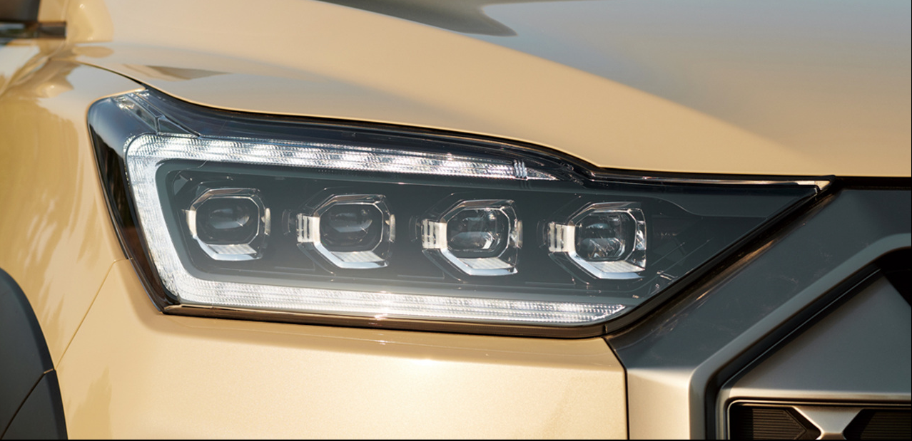 2025년형 무쏘 칸은 강렬한 전면 디자인과 공격적인 스타일이 돋보이는 픽업트럭입니다. 대형 그릴과 세련된 LED 헤드라이트가 도로 위에서 강한 존재감을 발산합니다. 볼륨감 있는 차체 라인과 근육질 휠 아치는 강인하면서도 현대적인 감각을 더합니다. 여기에 255mm 폭의 전지형 타이어를 장착한 18인치 알로이 휠이 더해져 어떤 지형에서도 안정적인 주행이 가능합니다.