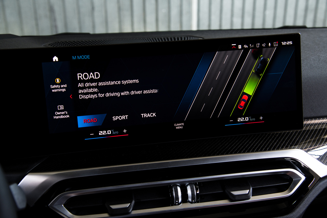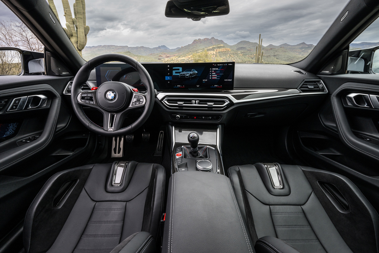 인테리어 소재 BMW 뉴 M2의 인테리어에는 나파 가죽 시트, 알칸타라 소재 등 고급 소재가 사용되어 고급스러운 느낌을 연출합니다. 시트는 나파 가죽으로 마감되어 부드러운 촉감과 편안한 착좌감을 제공합니다. 대시보드와 도어 트림에는 알칸타라 소재가 사용되어 고급스러운 느낌을 연출합니다.